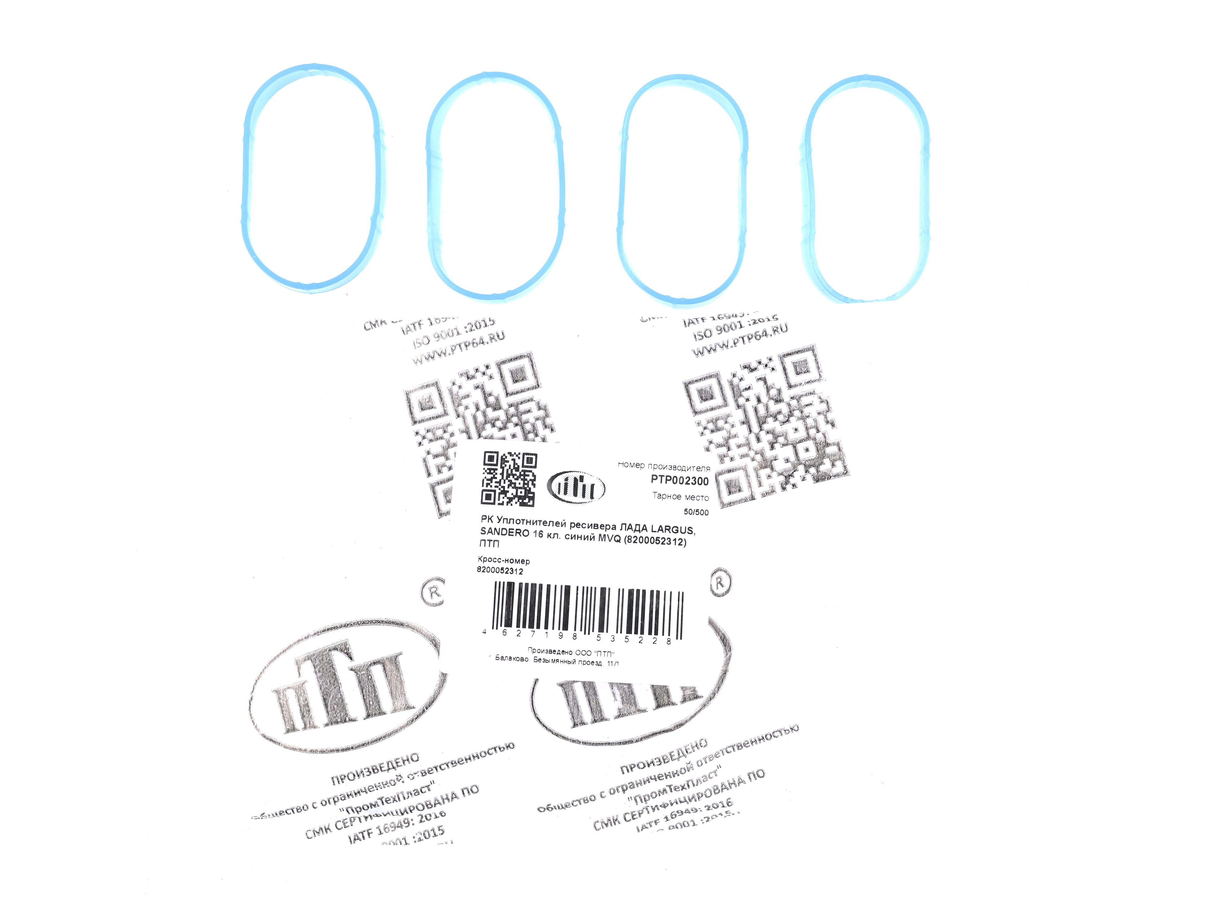Прокладка коллектора Лада-Ларгус, Logan, Sandero 16 кл. (впускной) комплект 5 шт., силикон (ПТП64)