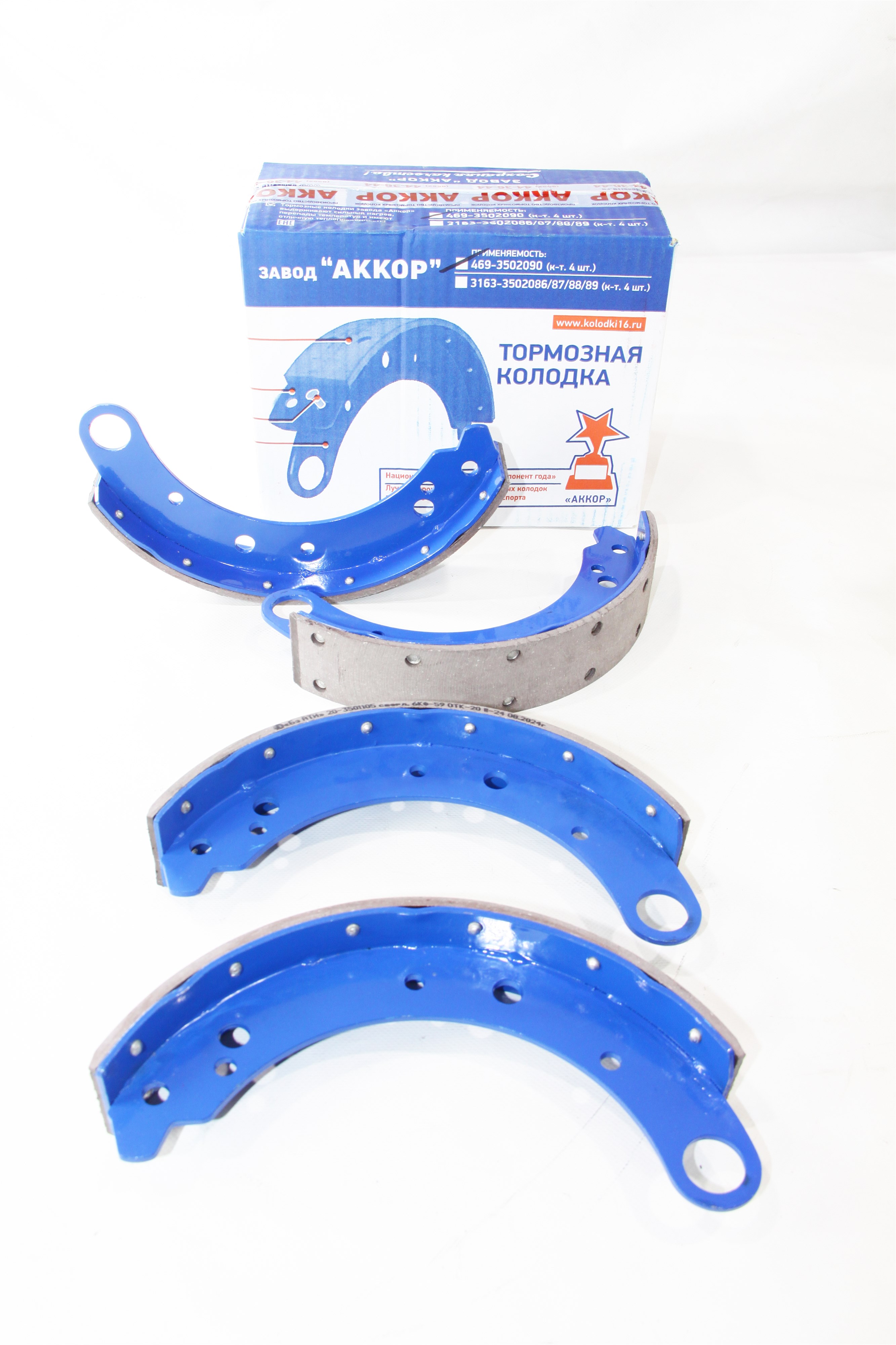 Колодка барабанного тормоза а/м УАЗ-469 клёпанная/длинная/задняя (к-т 4шт.) в коробке АККОР
