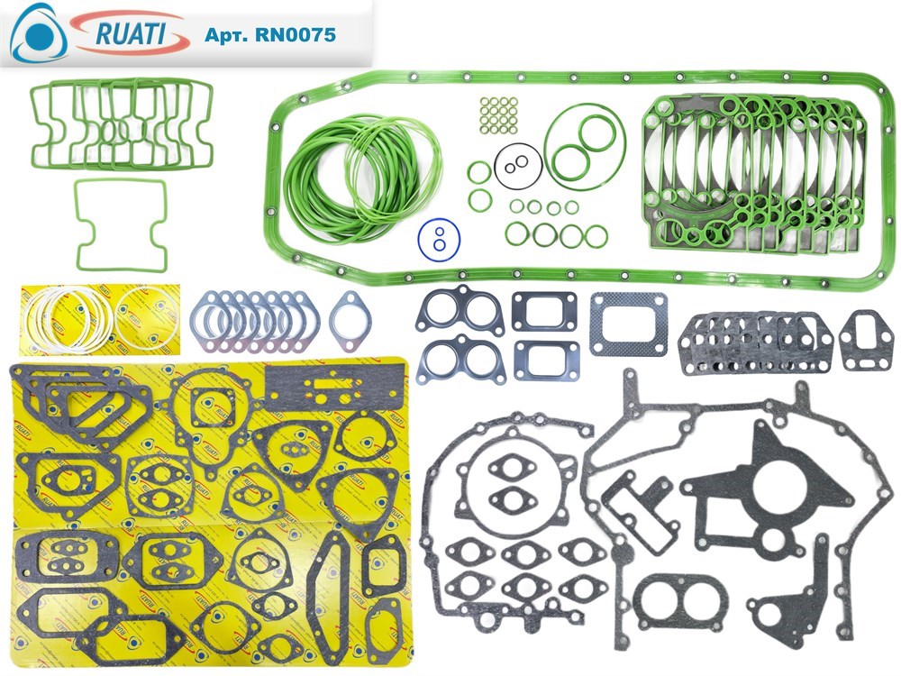 Комплект прокладок двигателя КАМАЗ ЕВРО-4, 5 Эконом под крышку пласт. ЕНА (53 наим. / 154 шт. прокладки паронит+ кольца+ силикон/ 740.70-1002000-Э) "RUATI"