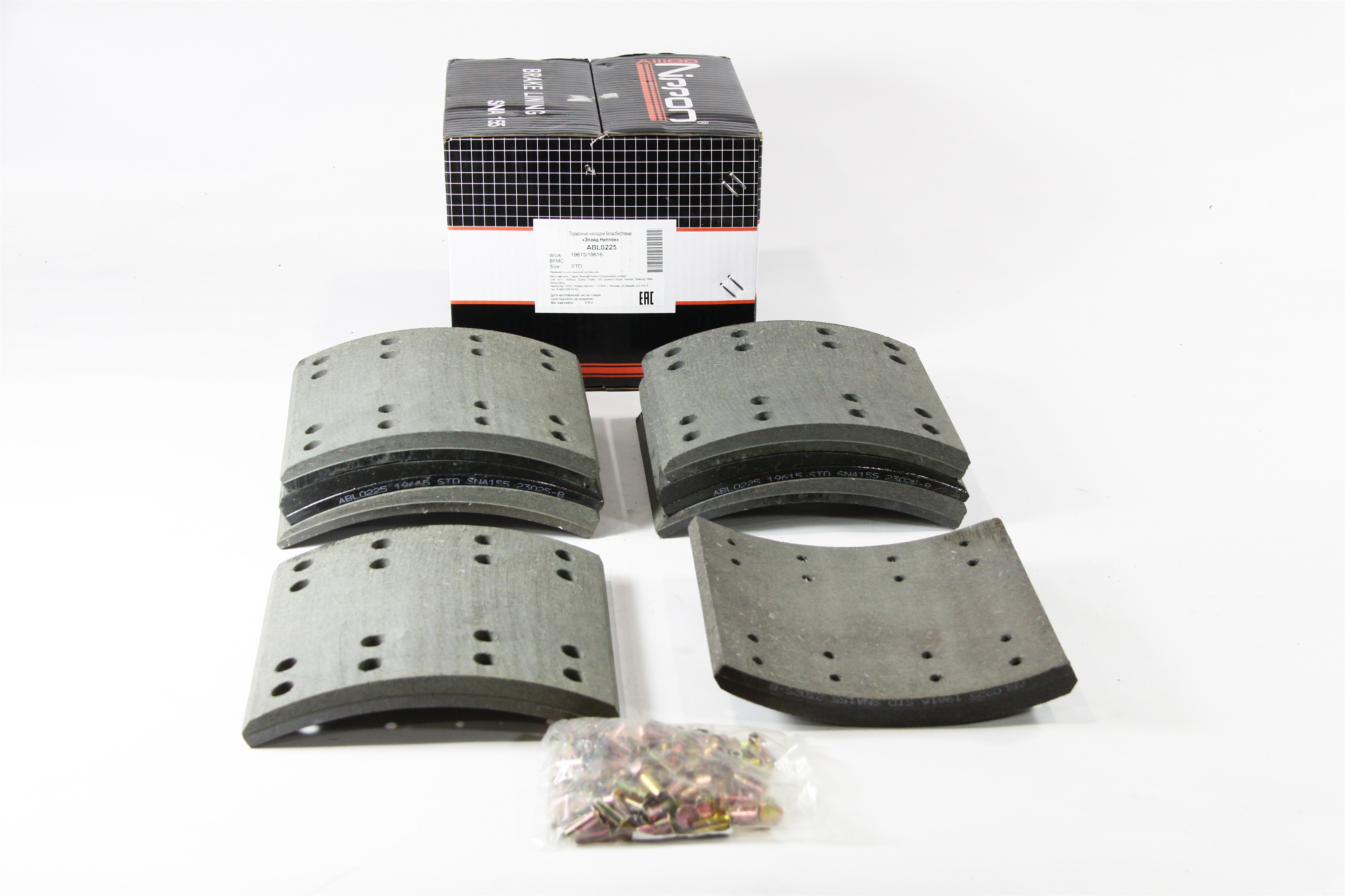 Рем. комплект тормозных накладок а/м КАМАЗ/НЕФАЗ мост RABA (Сверл./расточен./закл. (пустотелые)/ширина 180мм./ к-т 8 шт.) (865-01-3341-013/014) (19615/19616) STD NIPPON