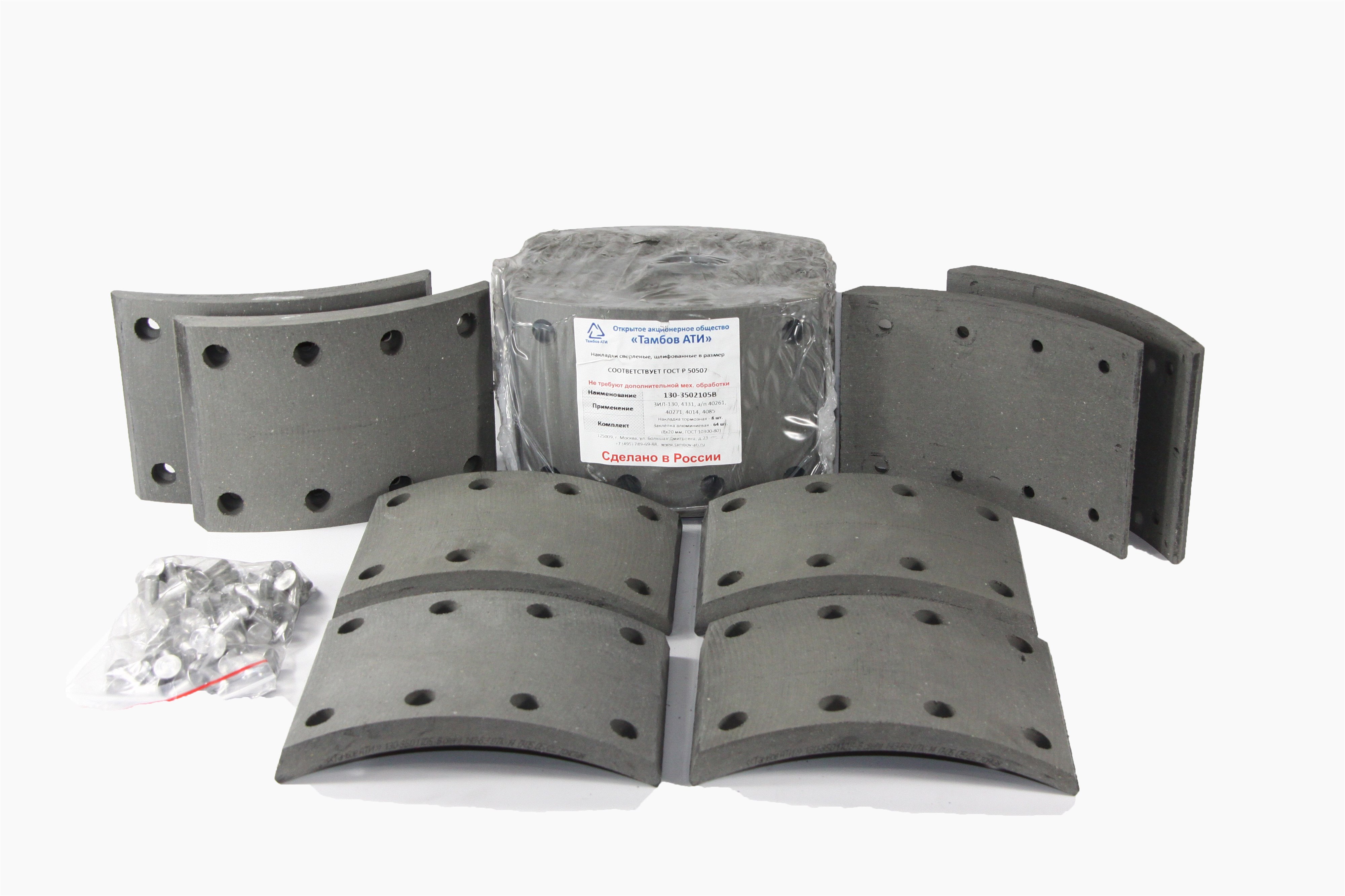 Рем. комплект тормозных накладок а/м ЗИЛ-130, 4331 (Сверл./раст./с заклёпками/ширина 140мм./ к-т 8 шт.) ТамбовАТИ